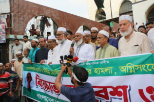 বিক্ষোভ সমাবেশে সভাপতির বক্তব্যে মুহাম্মদ নজরুল ইসলাম বলেন, ২০২৪ সালের জুলাই আন্দোলন ছিলো ফ্যাসিবাদের নির্যাতনে পিষ্ট জনতার স্বতঃস্ফূর্ত বিস্ফোরণ। ১৬ জুলাই শহীদ আবু সাঈদের শাহাদাতের মাধ্যমেই ফ্যাসিবাদের পতন ঘণ্টা বেজে উঠে। একই দিনে চট্টগ্রামে তিনজন এবং ঢাকার রাজপথে দু’জন শাহাদাত বরণ করেন। জাতি যখন জুলাই বিপ্লবের বার্ষিকী পালন করছে ঠিক তখনই গোপালগঞ্জের টুঙ্গিপাড়ায় পতিত স্বৈরাচারের দোসররা হামলা, হত্যাকাণ্ড, অগ্নিসংযোগ ও বিশৃঙ্খলা সৃষ্টি করার অপপ্রয়াস চালায়। এহেন ন্যক্কারজনক ঘটনার তীব্র নিন্দা ও ক্ষোভ প্রকাশ করেন।
