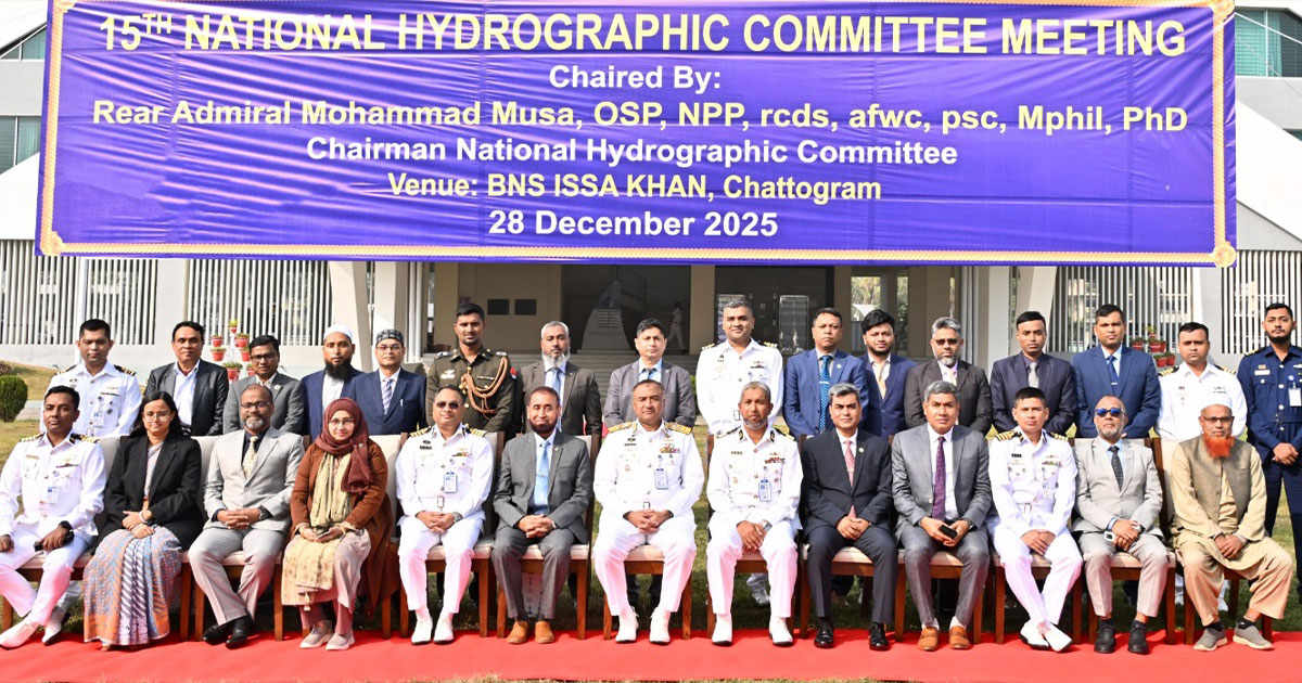 সমুদ্রসম্পদের টেকসই ব্যবহার নিশ্চিত করা এবং সামুদ্রিক কর্মকাণ্ডকে নিরাপদ, সুশৃঙ্খল ও কার্যকরভাবে পরিচালনার লক্ষ্যে ন্যাশনাল হাইড্রোগ্রাফিক কমিটির ১৫তম সভা আজ রবিবার (২৮ ডিসেম্বর) চট্টগ্রামে বাংলাদেশ নৌবাহিনীর ব্যবস্থাপনায় বানৌজা ঈসা খানে অনুষ্ঠিত হয়েছে।