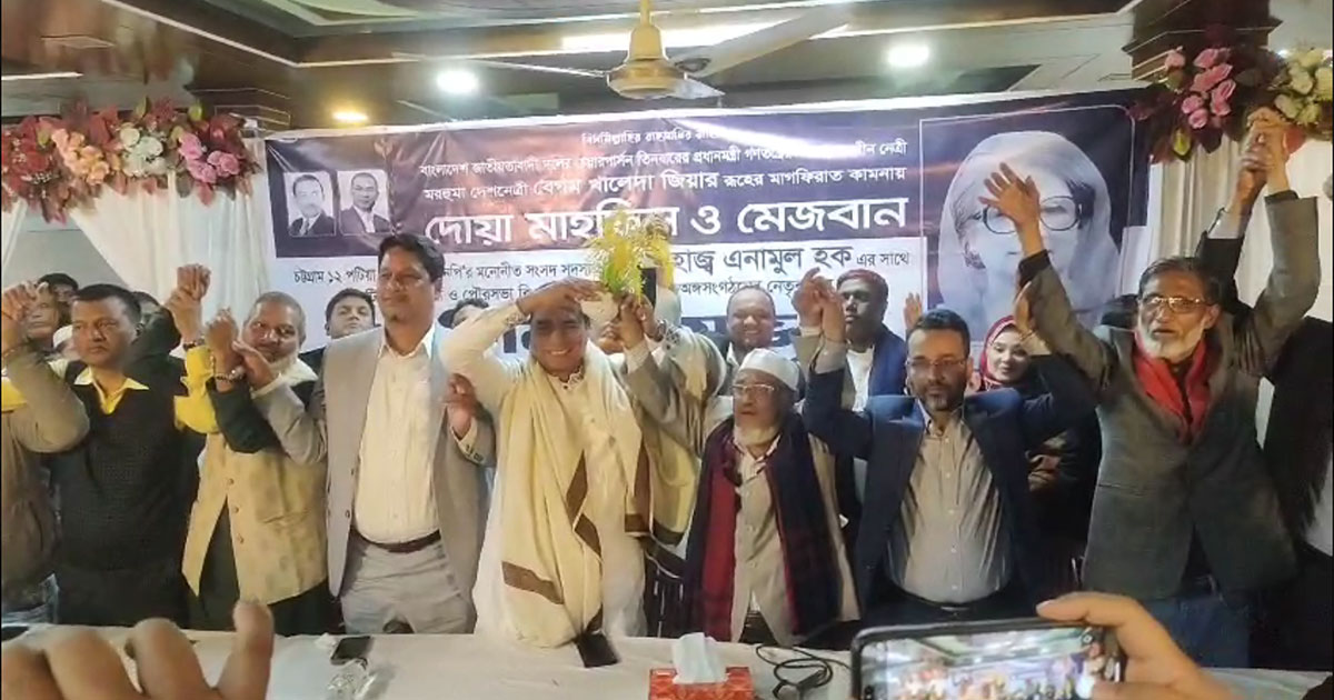 গতকাল চট্টগ্রাম দক্ষিণ জেলা বিএনপির আহ্বায়ক আলহাজ্ব ইদ্রিস মিয়ার উদ্যোগে তিনবারের সাবেক প্রধানমন্ত্রী ও বিএনপি চেয়ারপার্সন বেগম খালেদা জিয়ার বিদেহী আত্মার মাগফিরাত কামনায় পটিয়ায় দোয়া মাহফিল ও মেজবান অনুষ্ঠিত হয়। অনুষ্ঠানে চট্টগ্রাম-১২ আসনে বিএনপি মনোনীত সংসদ সদস্য প্রার্থী আলহাজ্ব এনামুল হক এনাম উপস্থিত হলে দলের ভারপ্রাপ্ত চেয়ারম্যান তারেক রহমানের নির্দেশনা অনুযায়ী সবাই একযোগে ধানের শীষের পক্ষে কাজ করার বিষয়ে ঐকমত্য পোষণ করেন। এতে উপস্থিত নেতাকর্মীদের মধ্যে এক আনন্দঘন পরিবেশের সৃষ্টি হয়।
