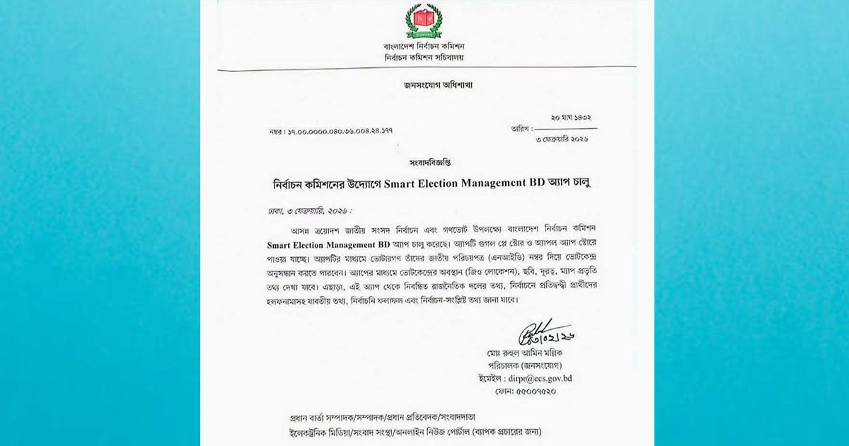 ত্রয়োদশ জাতীয় সংসদ নির্বাচন সামনে রেখে ইসির ‘Smart Election Management BD’ অ্যাপ চালু