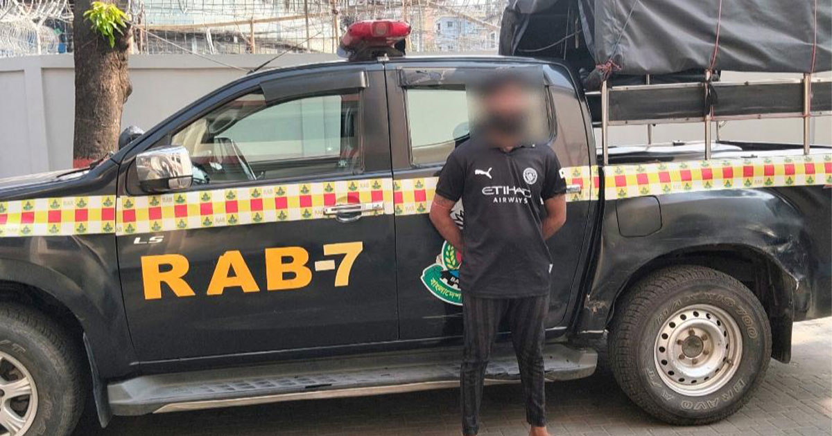 র্যাব জানায়, গোপন সংবাদের ভিত্তিতে বৃহস্পতিবার (২ এপ্রিল ২০২৬) বিকেলে চট্টগ্রাম মহানগরীর কোতোয়ালী থানাধীন বলুয়ার দিঘী এলাকায় অভিযান পরিচালনা করে দেব (২৫) নামে ওই আসামিকে আটক করা হয়। তিনি কোতোয়ালী থানার সেবক কলোনী এলাকার শেরীপ প্রকাশ শরিফ দাশের ছেলে।