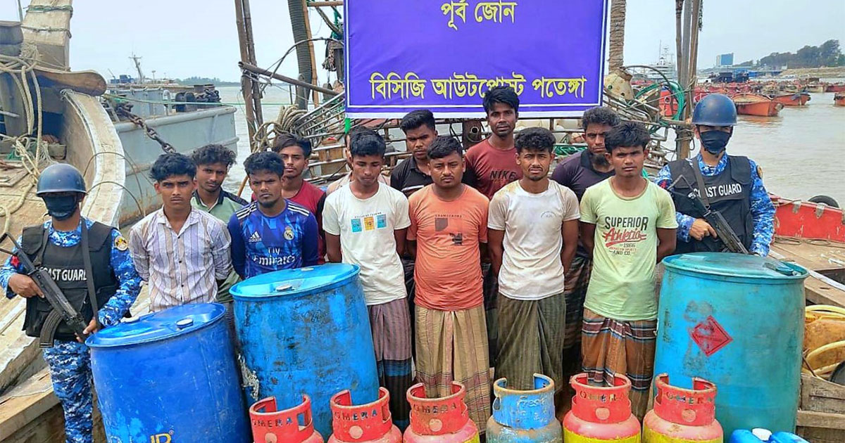 চট্টগ্রামের পতেঙ্গা এলাকায় অভিযান চালিয়ে বিপুল পরিমাণ ডিজেল ও গ্যাস সিলিন্ডারসহ ১২ জন পাচারকারীকে আটক করেছে কোস্ট গার্ড।